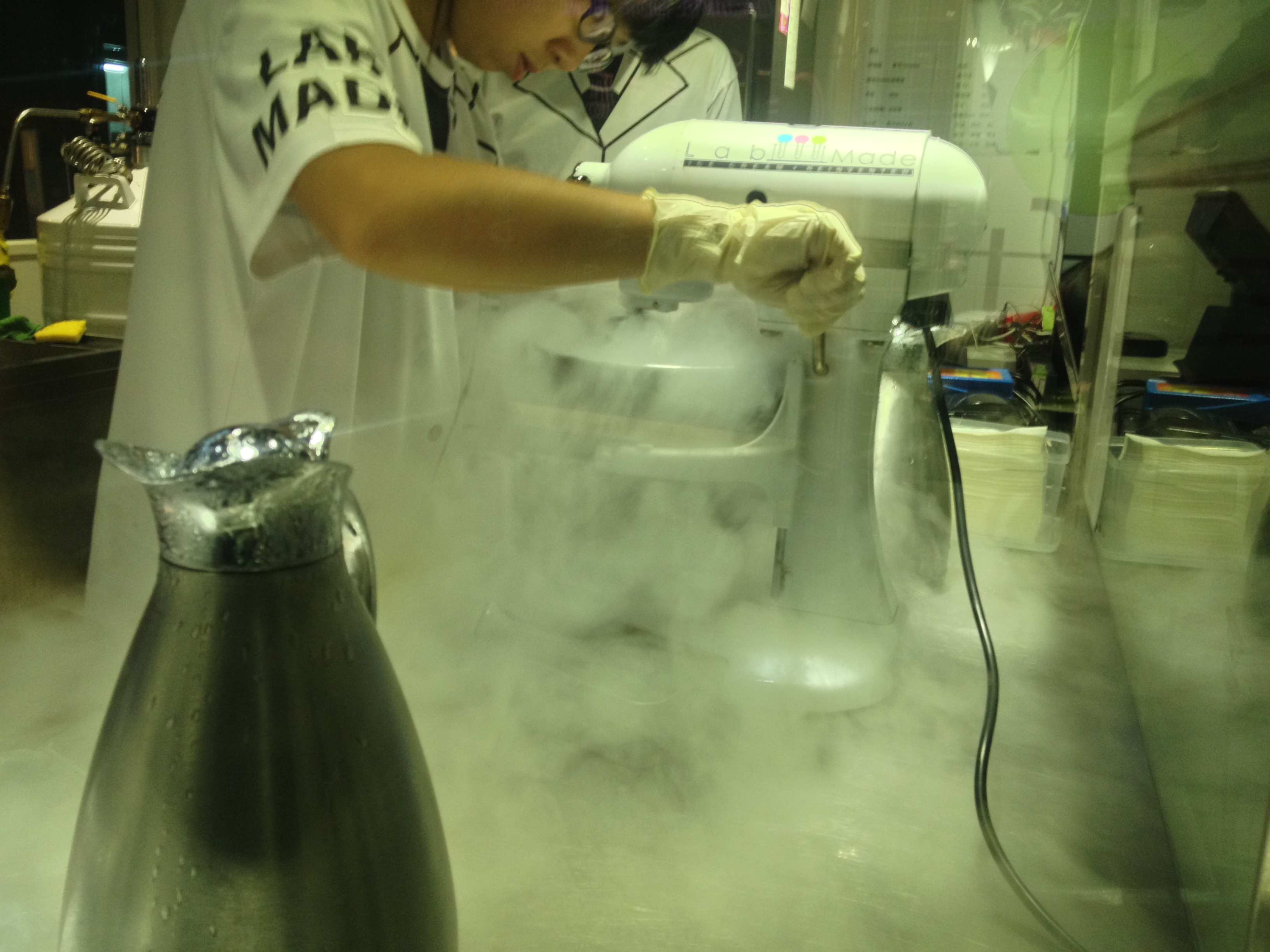 I happened upon Lab Made because a friend of mine currently living in Hong Kong told me about it and I’ve never been one to turn away ice cream, let alone ice cream that is prepared using science and chemistry as a guideline. Yes, I realise that making regular ice cream uses science as well but the main reactant used by Lab Made makes it more science-y. They use liquid nitrogen.