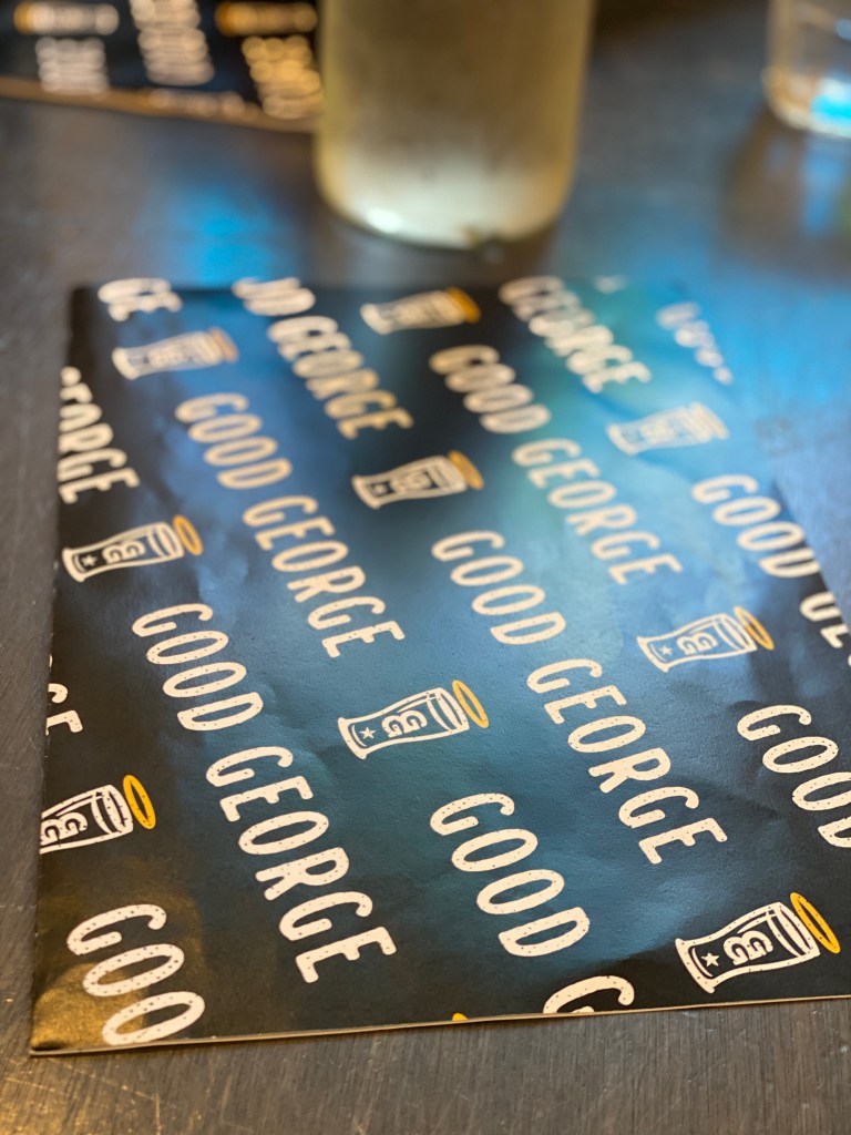 Looking over the menu we saw that they didn’t just do beers. They had numerous ciders, wines, and hard alcohol options for purchase as well. Yes, all of it (except the wine) is made by the good folks at Good George. I am saying that because their logo was on the labels of the drinks. I may be jumping to conclusions but dare I say that they make it all in house? Yes. I’m going to not even research this further and boldly claim that!