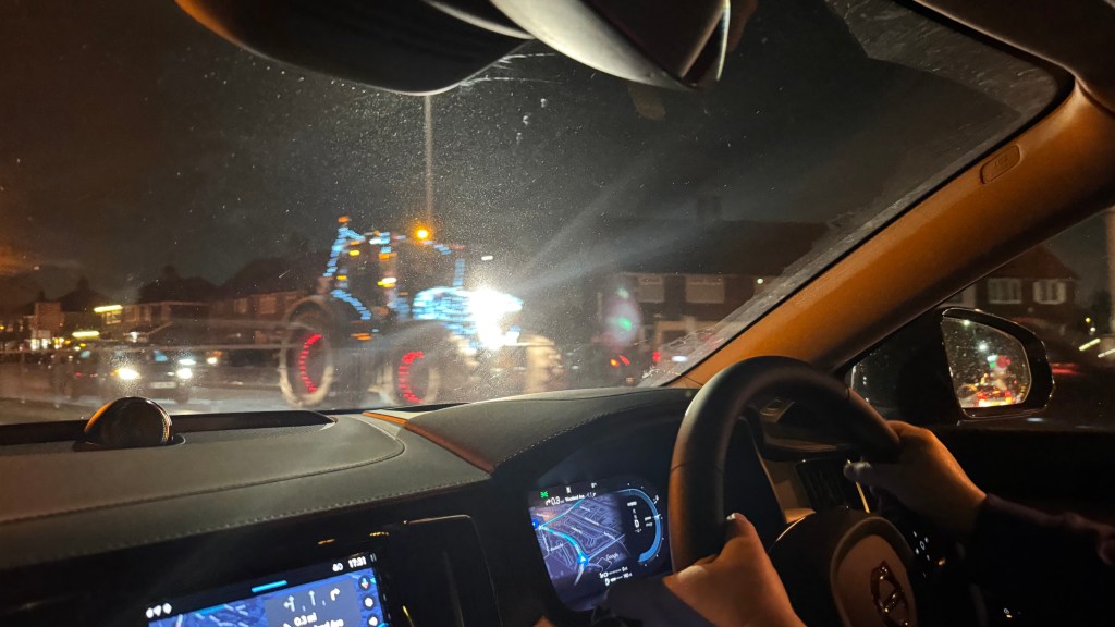 I mean, what fun! This was so unexpected that we couldn’t help but be amazed and smile at the same time. The pictures are a bit blurry because we weren’t expecting to see anything photoworthy while driving the random roads. After snapping some quick photos, we discovered that it was the Liverpool Christmas Tractor Convoy. Here’s a link to a video with better quality views of the tractors.