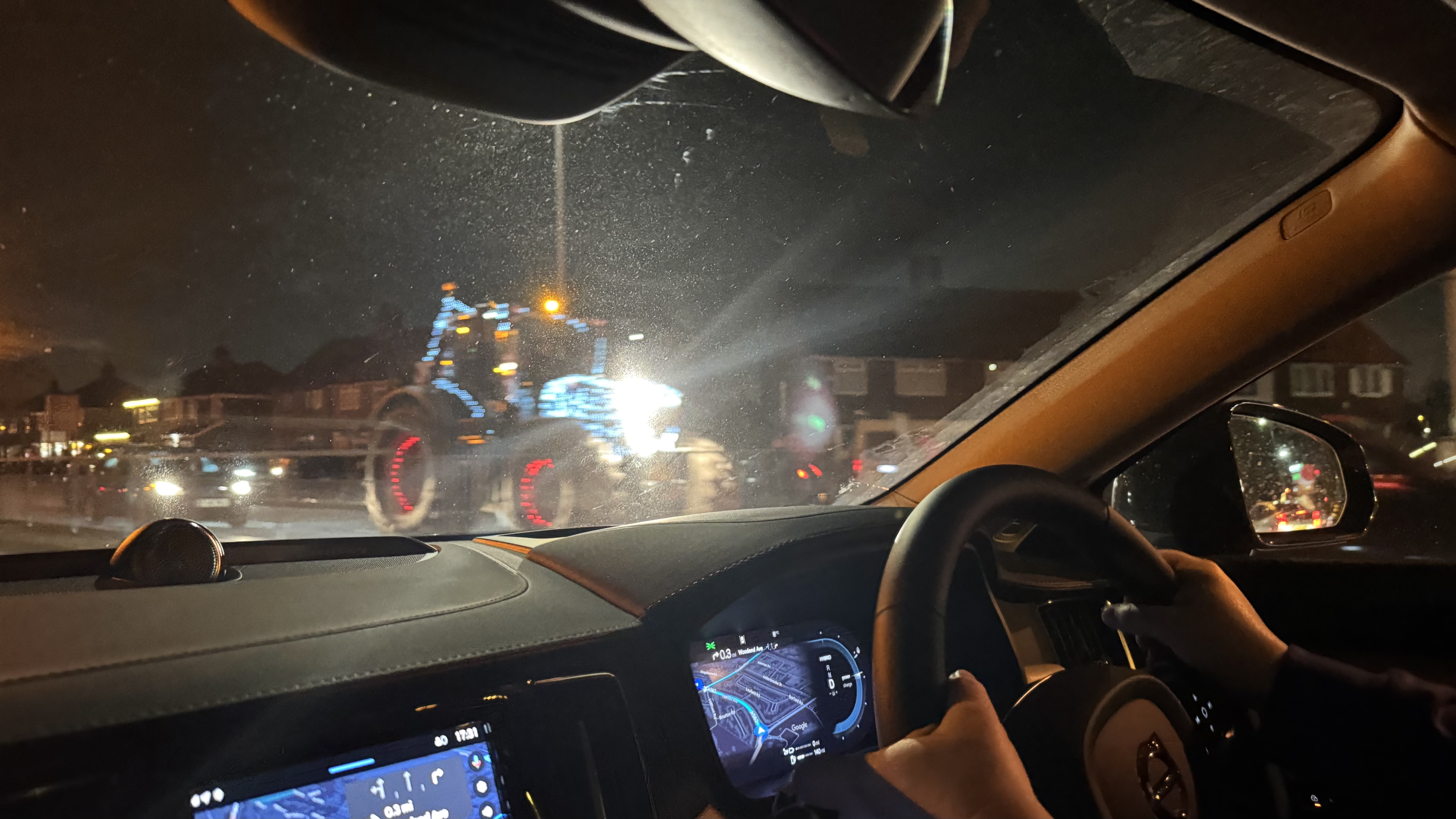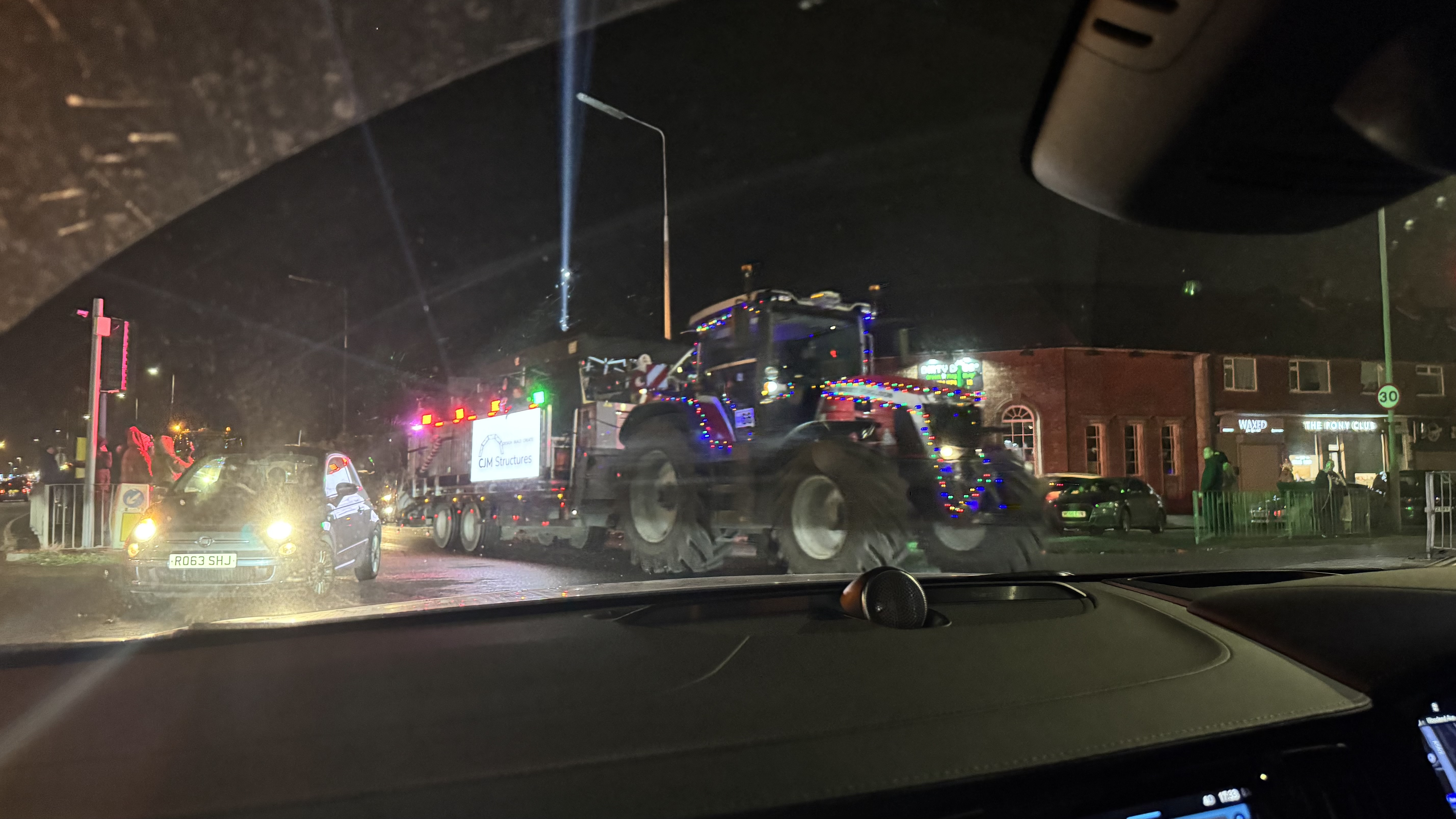 I mean, what fun! This was so unexpected that we couldn’t help but be amazed and smile at the same time. The pictures are a bit blurry because we weren’t expecting to see anything photoworthy while driving the random roads. After snapping some quick photos, we discovered that it was the Liverpool Christmas Tractor Convoy. Here’s a link to a video with better quality views of the tractors.