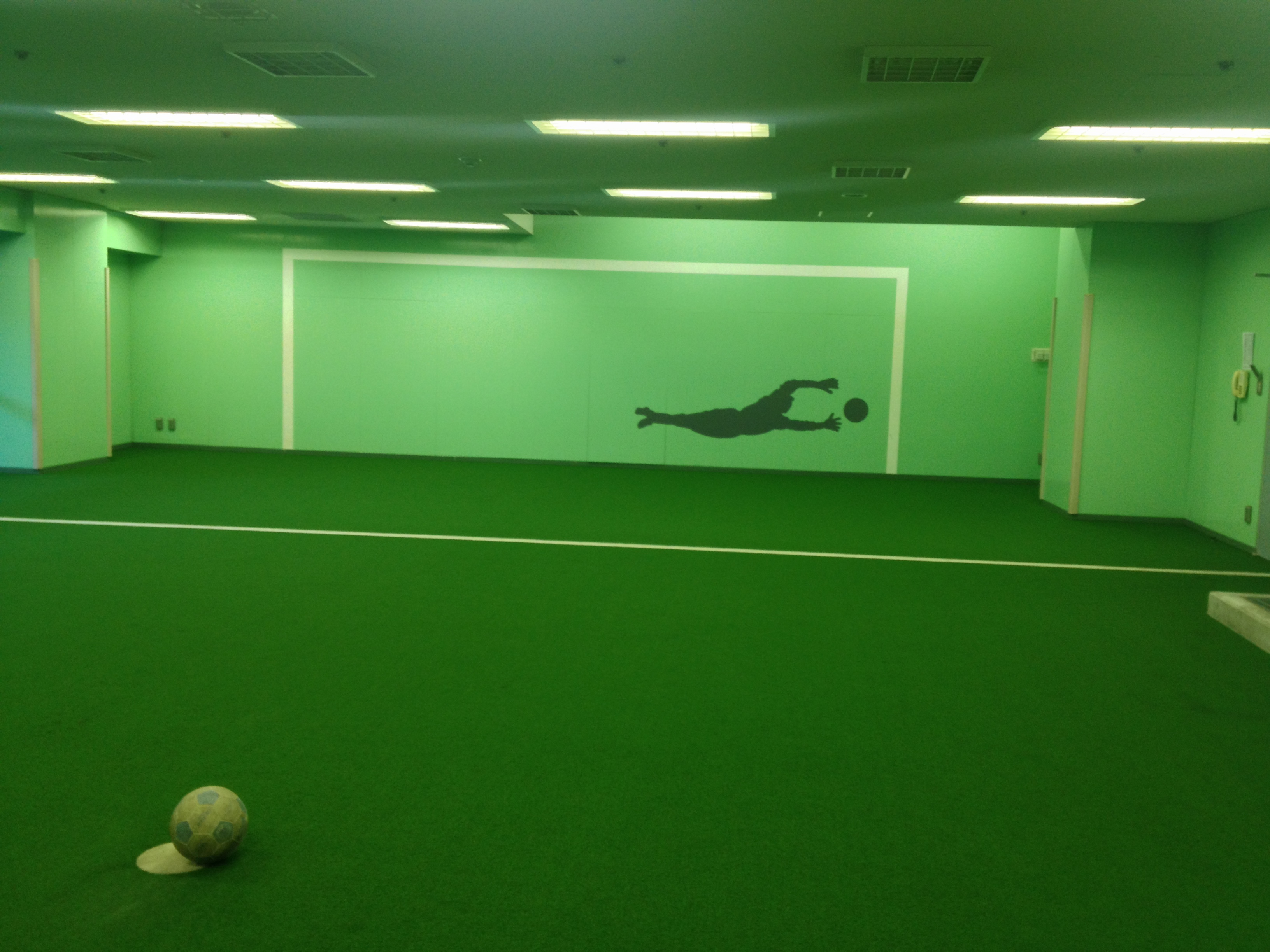 After touring the locker room we were brought into a room where the players practiced shooting on goal. It is literally a goal painted on the wall with a diving goalie added for effect. And yes, you can even take a shot on goal!