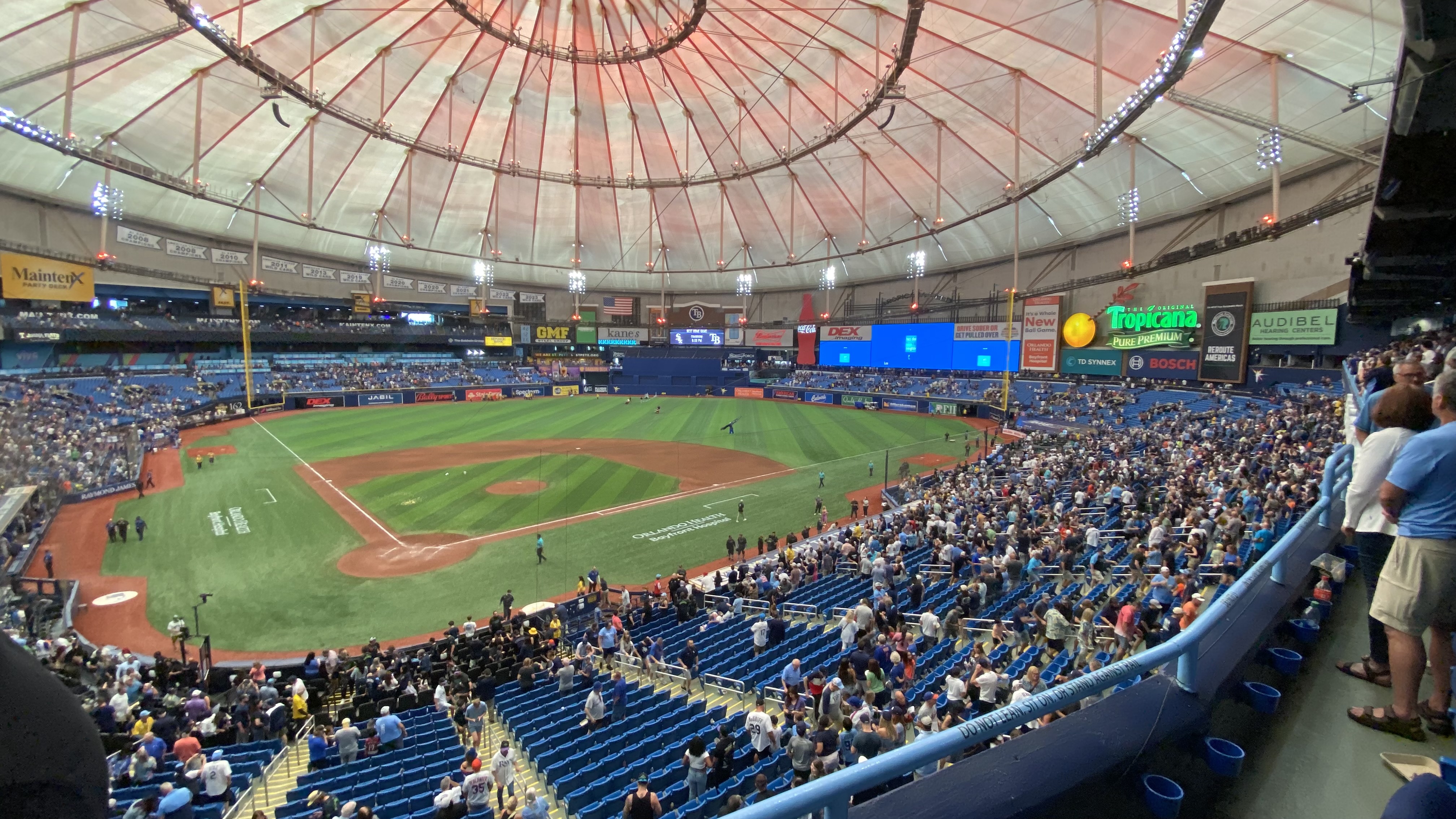 Here I am at First Pitch with nearly the entire section to myself. People would trickle in as the game went on, but I found it alarming that I was the only person in my row and one of three in my section. I guess I am spoiled by having a team that fields a decent product. This is another case of an owner not doing enough to field a competitive team.